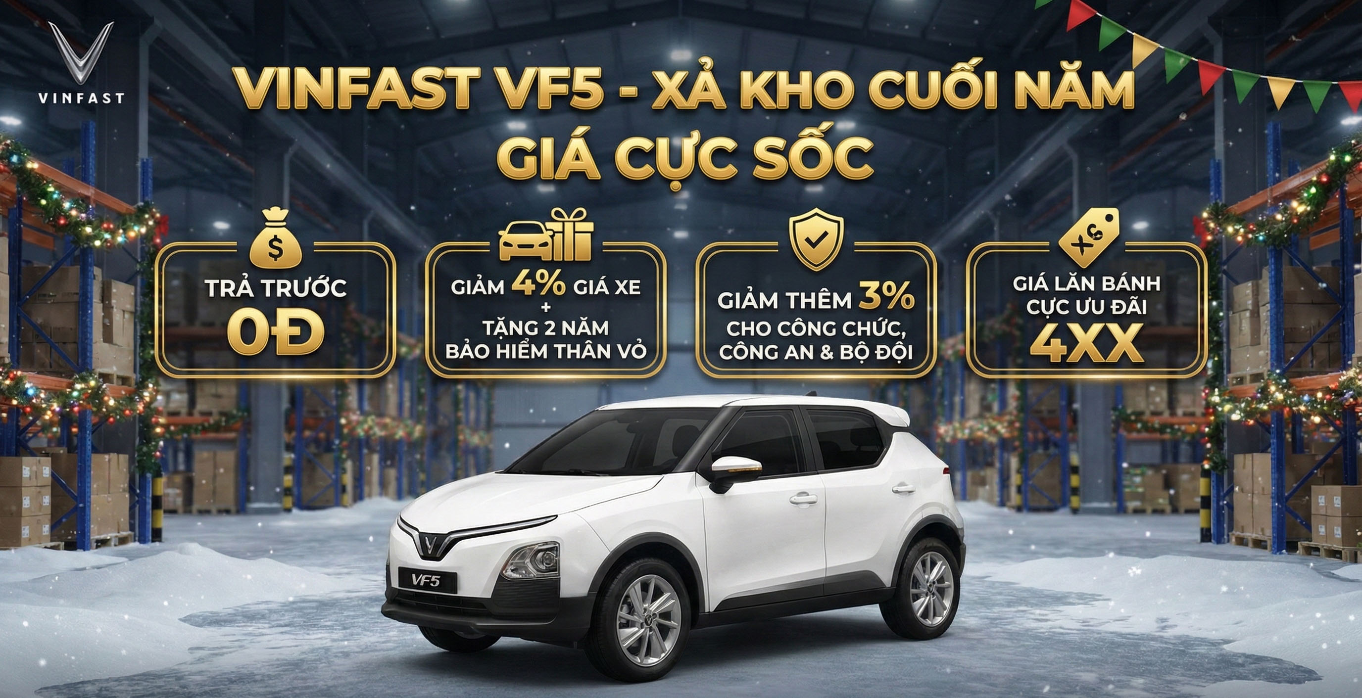 - VINFAST VF5 (Mua Pin): Giá niêm yết 496 triệu - Ưu đãi ngay trước bạ 0 đồng, Ưu đãi 21.000.000 Quy đổi thành điểm VinClup (Áp dụng cho khách ra biển số TP. HCM) 👉 HT Giảm Lãi Suất 3% Trong 3 Năm, Tặng 2 Năm Bảo Hiểm Thân Vỏ Giảm tiền mặt hấp dẫn - Sạc pin miễn phí tại các trạm sạc tới hết 30/06/2027 - Hỗ trợ trả góp lên tới 80% giá trị xe, lãi suất ưu đãi - Liên hệ trực tiếp để có GIÁ ƯU ĐÃI TỐT NHẤT