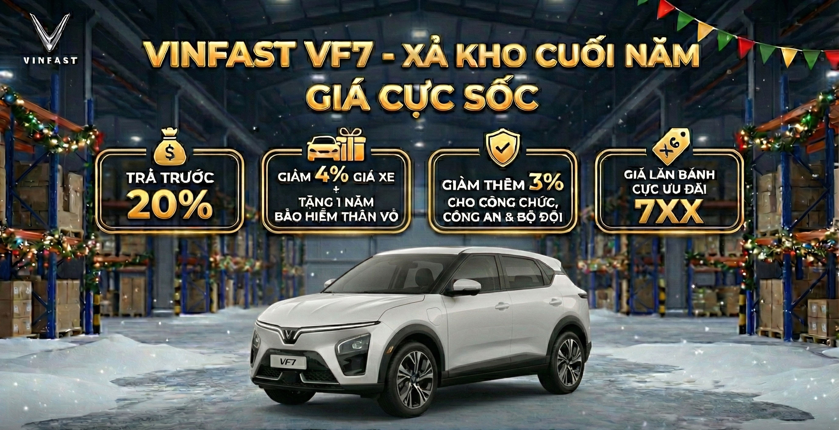 - VINFAST VF7 (Mua Pin): Giá niêm yết chỉ từ 749 triệu - Ưu đãi ngay trước bạ 0 đồng, Ưu đãi 53.000.000 VNĐ Quy đổi thành điểm VinClup (Áp dụng cho khách ra biển số TP. HCM) 👉 HT Giảm Lãi Suất 3% Trong 3 Năm Giảm tiền mặt hấp dẫn - Sạc pin miễn phí tại các trạm sạc tới hết 30/06/2027 - Hỗ trợ trả góp lên tới 80% giá trị xe, lãi suất ưu đãi - Liên hệ trực tiếp để có GIÁ ƯU ĐÃI TỐT NHẤT
